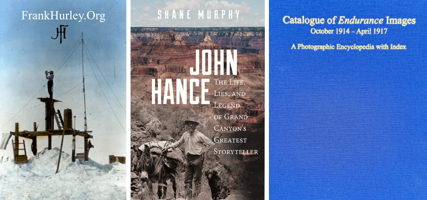 Presentation. Frank Hurley’s Endurance Expedition Photos, October 1914 – April 1917. 2023. Over 500 images laced together in a start-to-finish timeline. Every known Endurance photo is shown once, accompanied by other subject-related images. Sources include postal cards, hand-tinted lantern slides, formal presentation and personal albums, newspaper articles, archives, and, private collections. ZOOM talk archived at GrandCanyonHistory.Org under the “Past GCHS Virtual Outings Presentations” link at https://vimeo.com/808311670.